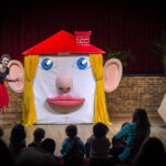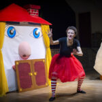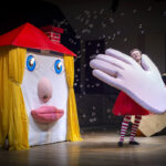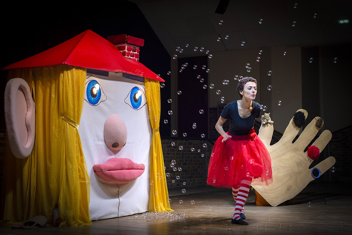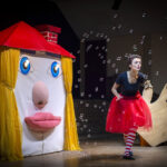 La maison-cabane à tête de bonhomme est un vrai personnage qui vit, respire, dort. Elle a même d’immenses mains manipulées par des comédiennes. Mais on lui a jeté un sort, et il faut la ranimer en découvrant les cinq sens qu’elle a perdus : odorat, ouïe, vue, toucher, goût. Quel bonheur de participer aux devinettes, comptines et jeux qui font avancer l’histoire jusqu’à l’heureux dénouement. Intelligent et beau. Henriette Bichonnier – Télérama