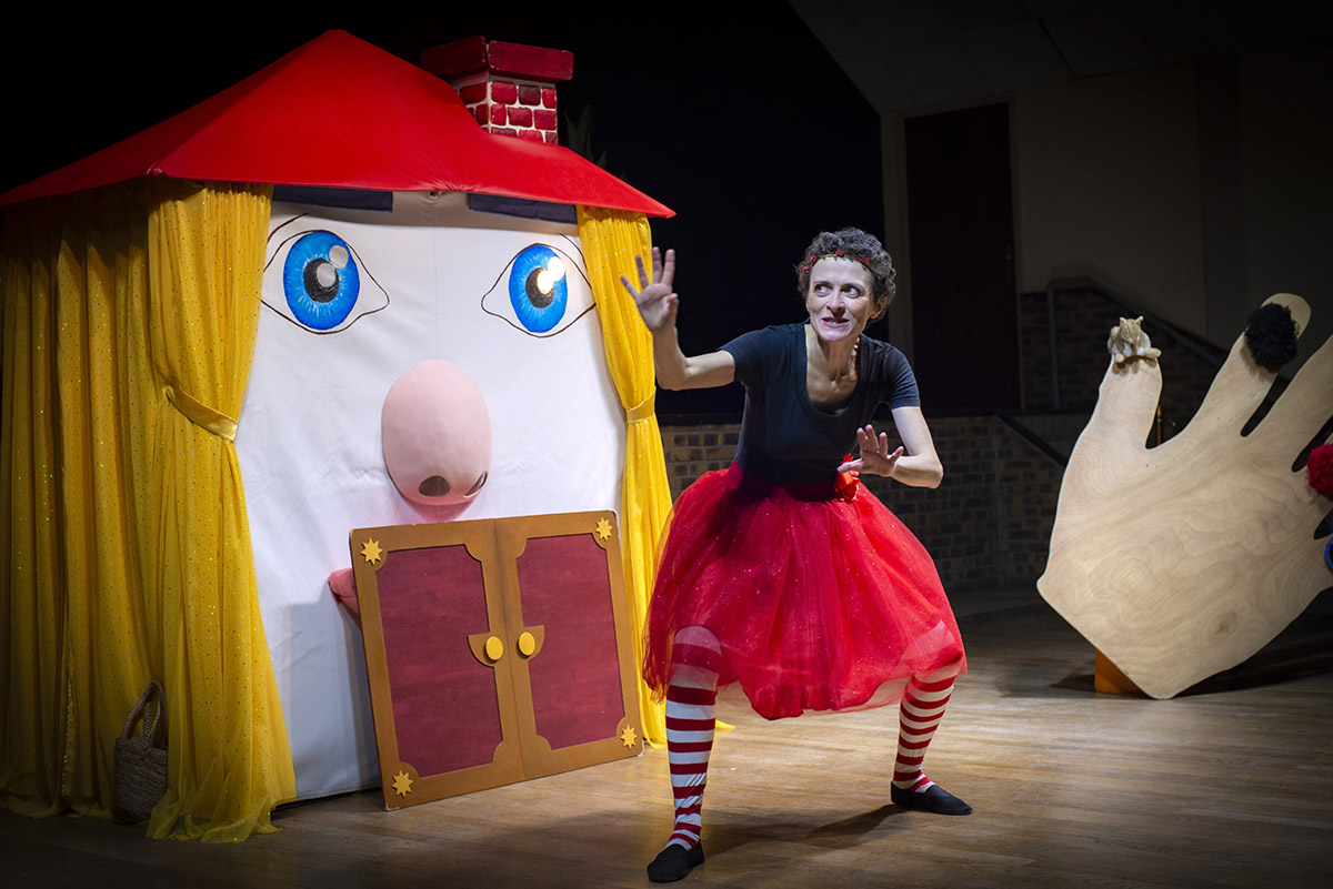 C’est une maison à tête de bonhomme un peu comme les cabanes de jardin. Les yeux se ferment avec des volets, la bouche s’ouvre avec une porte, le chapeau-bibi avec cheminée-barette couvre de longs cheveux blonds. Le but du jeu est de faire découvrir les cinq sens aux tout-petits en réveillant la maison endormie comme La Belle au bois dormant. Il faut lui déboucher le nez, redresser les oreilles et dénicher ses grandes mains. Un combat amusant que les enfants livrent avec énergie en s’impliquant dans des gestes et comptines qui servent de code secret et de refrains. Quel enchantement lorsqu’on devient soi-même héros de l’histoire.