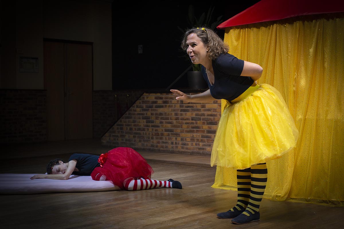 qui caressent, grattent ou pincent ! Deux comédiennes, maquillées, l’une en costume de tulle