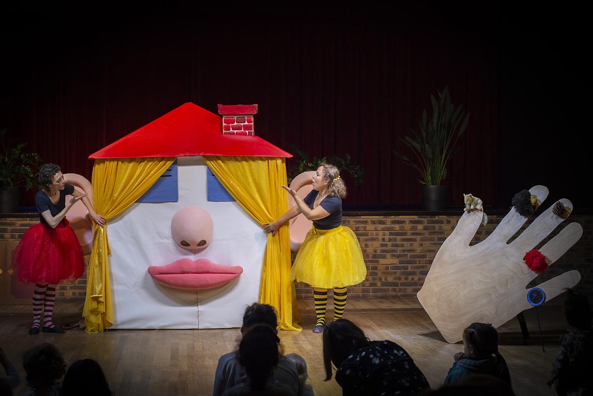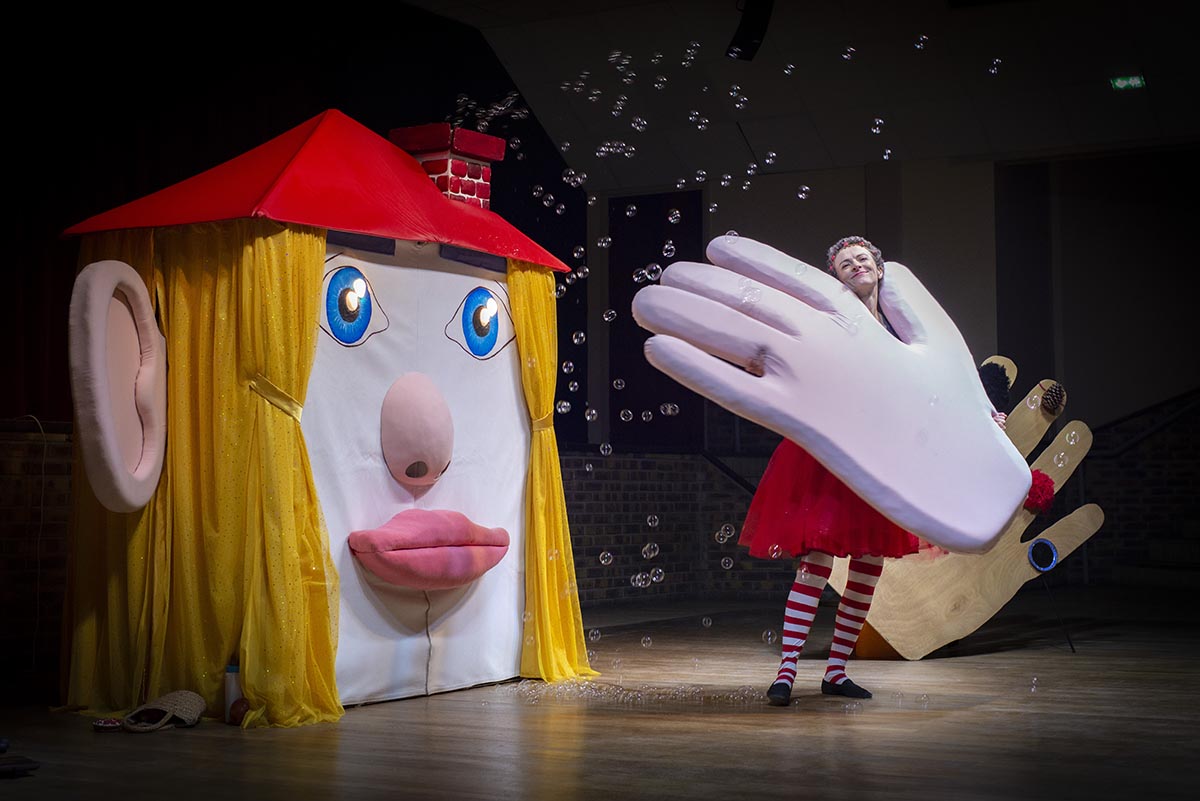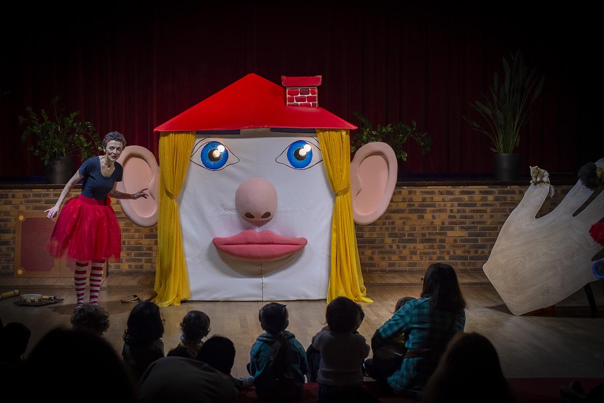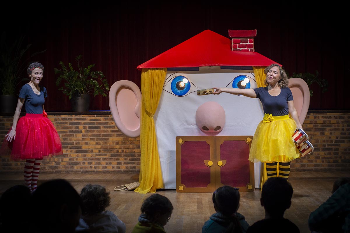 spectacle où deux comédiennes et leur « Maison Bonhomme » font découvrir aux enfants les 5