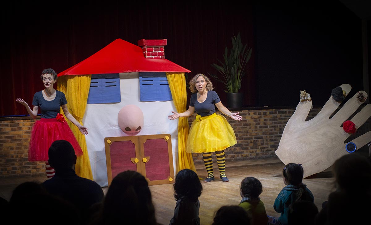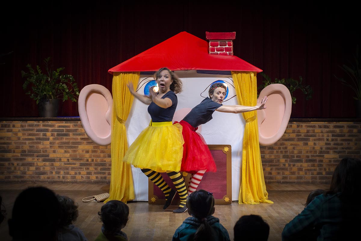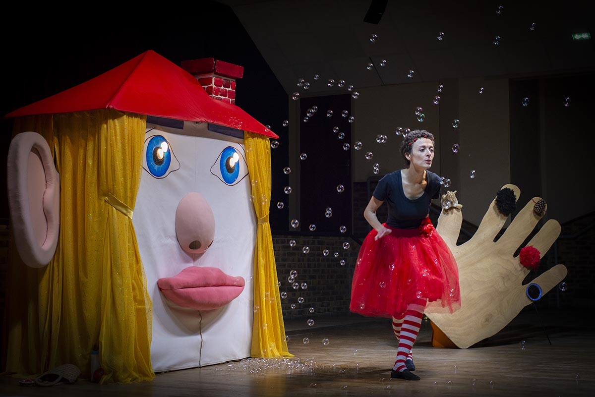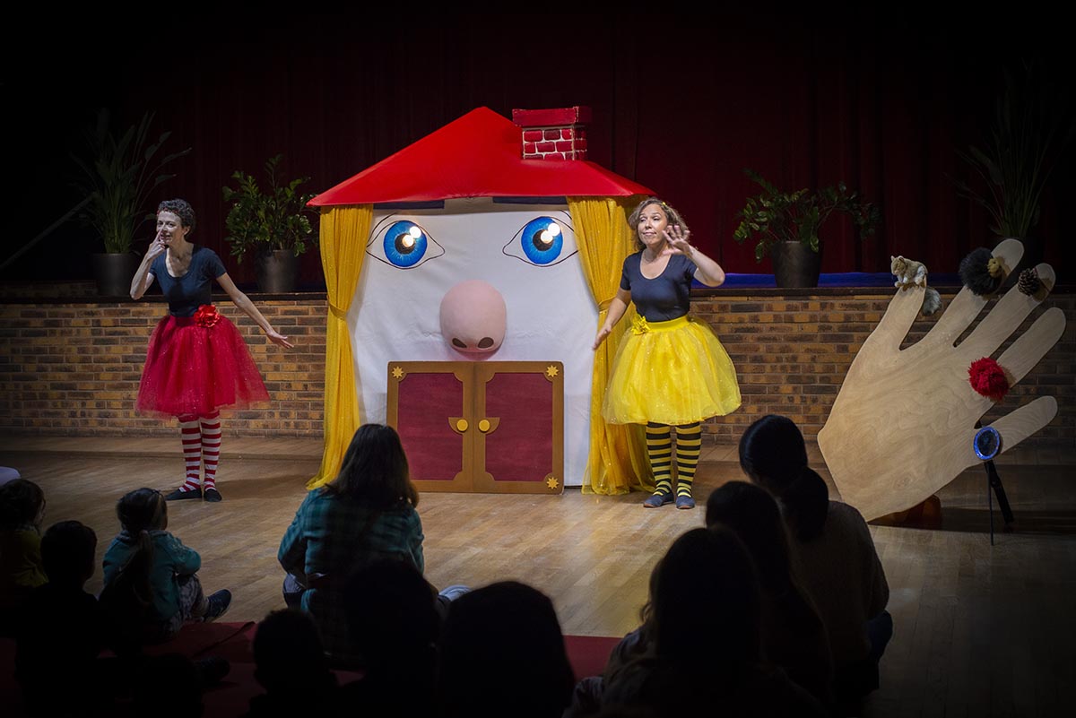 spectacle où deux comédiennes et leur « Maison Bonhomme » font découvrir aux enfants les 5